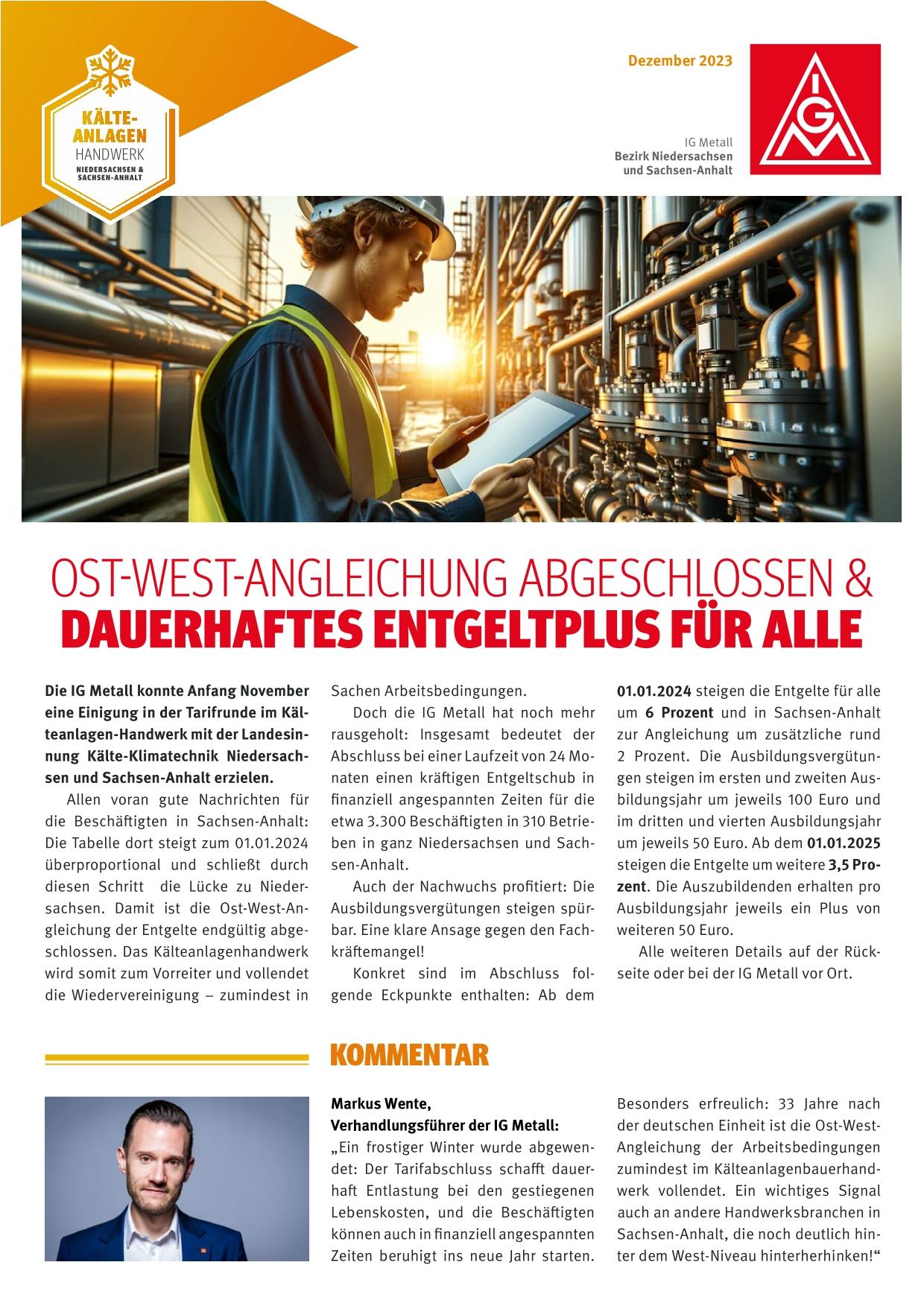 6 Prozent mehr Geld ab 01.01.2024 - Ost-West-Angleichung endlich abgeschlossen